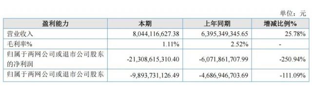 根据泰禾集团 2024 年年报,报告期内公司实现营业收入约 80.4 亿元,同比上升 25.78%;归属于公司股东的净利润亏损约 213 亿元,同比下降 250.94%。