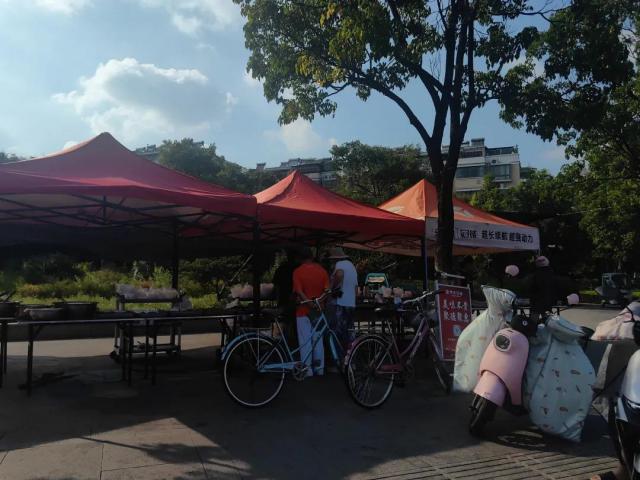 ● 宿迁当地一家酒楼,下午 5 点左右在店门口摆摊。图源:受访者